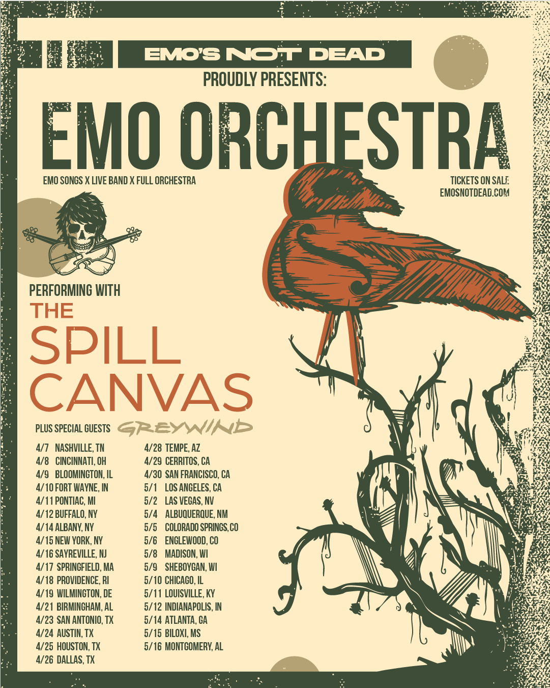 This Spring, Emo Orchestra welcomes THE SPILL CANVAS as the featured guest. Fans will hear THE SPILL CANVAS perform their own hits as well as songs by Taking Back Sunday, Fall Out Boy, A Day to Remember, The Used and many more.